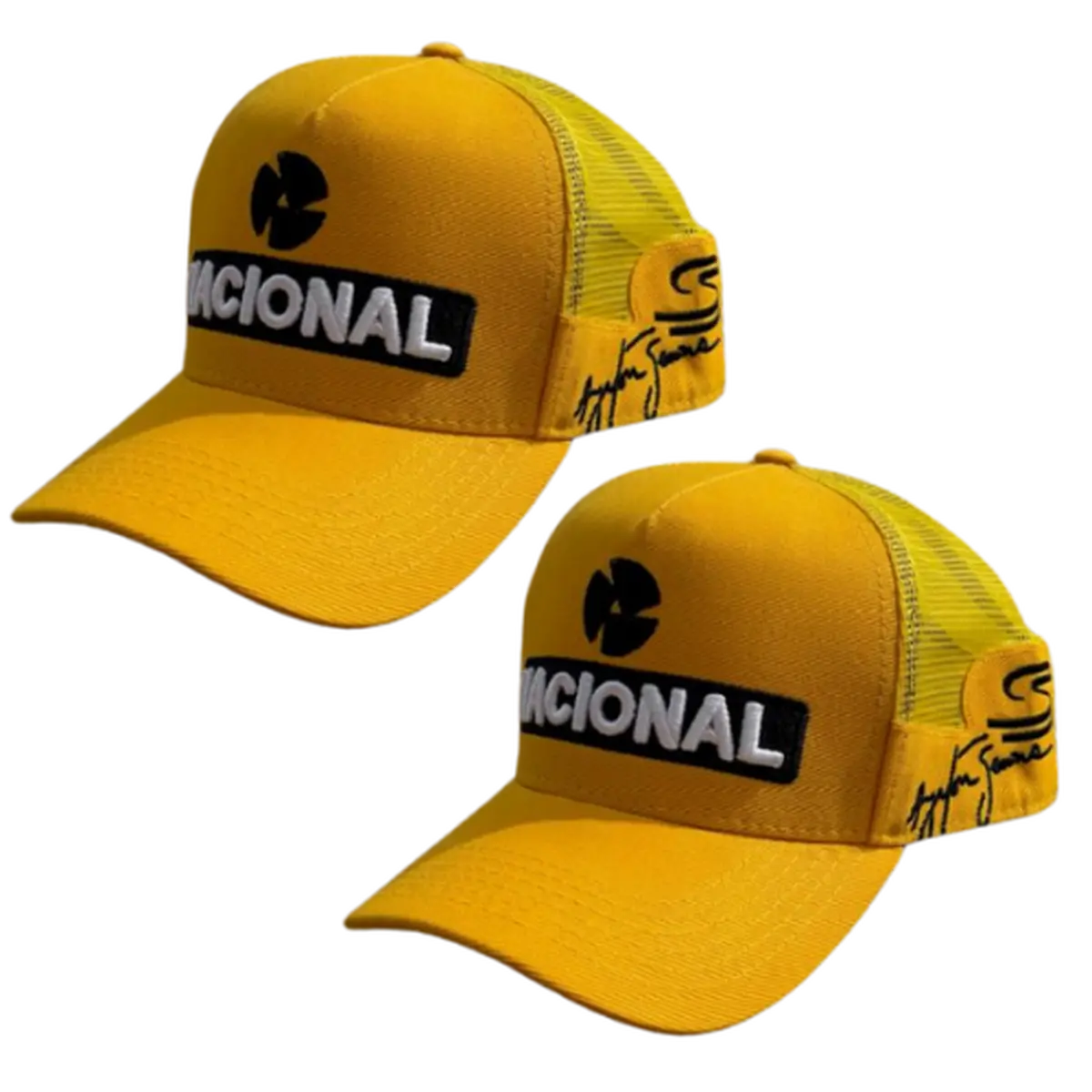 O Kit 2 Bonés VC – Amarelo é pra quem gosta de boné com presença e quer garantir logo dois de uma vez. A cor amarela chama atenção na medida certa e deixa o visual mais marcante, mesmo com uma roupa básica. Na frente, o modelo traz patch bordado “NACIONAL” + símbolo de trevo, que dá identidade e deixa o boné com um acabamento bem mais bonito.